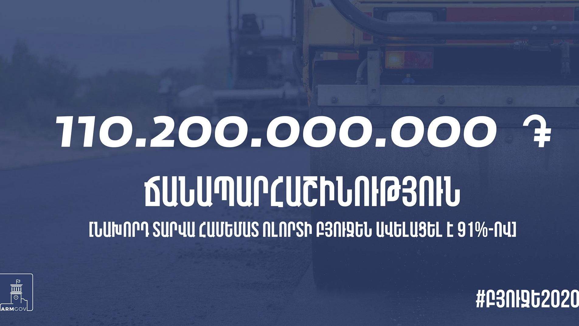 2020 թվականի բյուջեով ճանապարհաշինությանն ուղղվող ծախսերը կավելանան 91%-ով՝ կազմելով 110.2 մլրդ դրամ:
