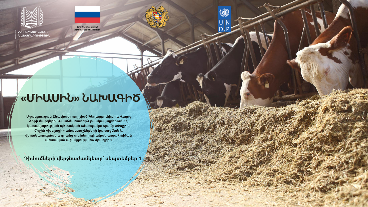 Միասին նախագիծը նախատեսված է 280 ք․մ արտադրական տարածքով, անկապ բոքսային պահվածքով «խելացի» անասնաշենքերի կառուցման կամ վերակառուցման և դրանց տեխնոլոգիական ապահովման համար։ Այն մասնակի համաֆինանսավորում է ՀՀ կառավարության կողմից 50 տոկոս պետական աջակցություն ստացած շահառուի մասնաբաժնի գնահատված ծախսերի ոչ ավելի, քան 70 տոկոսը։