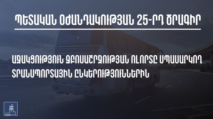 ՀՀ կառավարությունը հաստատել է կորոնավիրուսի տնտեսական հետևանքների չեզոքացման քսանհինգերորդ միջոցառումը, որի նպատակը զբոսաշրջության ոլորտը սպասարկող տրանսպորտային ընկերություններին աջակցելն է։