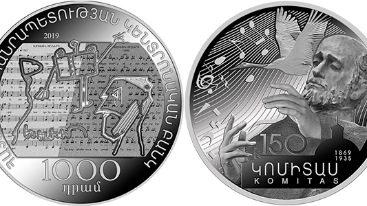 ՀՀ կենտրոնական բանկի կողմից թողարկված արծաթե հուշադրամը՝ նվիրված աշխարհահռչակ հայ կոմպոզիտոր և երաժշտագետ Կոմիտասի ծննդյան 150-ամյակին, Ռուսաստանի Դաշնությունում անցկացված «Դրամների համաստեղություն-2020»14-րդ միջազգային մրցույթում՝ զբաղեցնելով 3-րդ տեղը «Տարվա հուշադրամը» անվանակարգում։